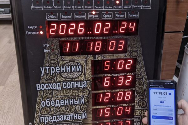 Эта история началась с вполне практической задачи. В одной из мечетей использовались старые электронные часы сирийского производства, адаптированные для российского рынка. Их основная функция — автоматическое отображение расписания молитв (рузнама) в течение всего года. На протяжении многих лет устройство исправно работало и не вызывало нареканий. Однако со временем стало заметно, что фактическое время намаза в…